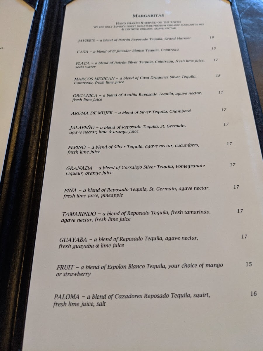 Javier's Menu